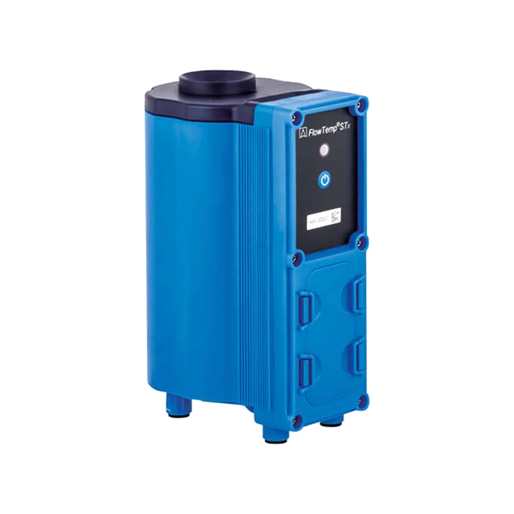 Monitoring, safety and environmental protection are just some of the reasons why flow and temperature measurement at water systems is becoming increasingly important. The FlowTemp® STx is a simple and compact measuring device for determining volume flow and water temperature at water taps. The sophisticated sensor system handles the measurements simultaneously, quickly and precisely.